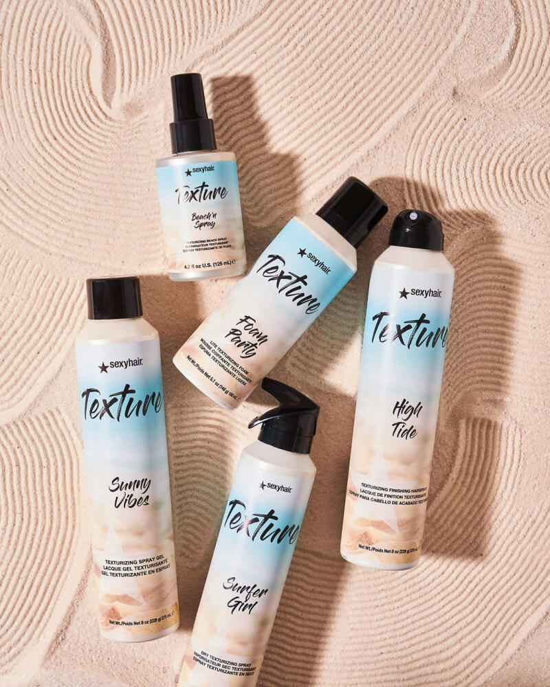 Create buildable wavy hair with our Texture SexyHair line! This line allows you to create your textured look for lived in beach hair.