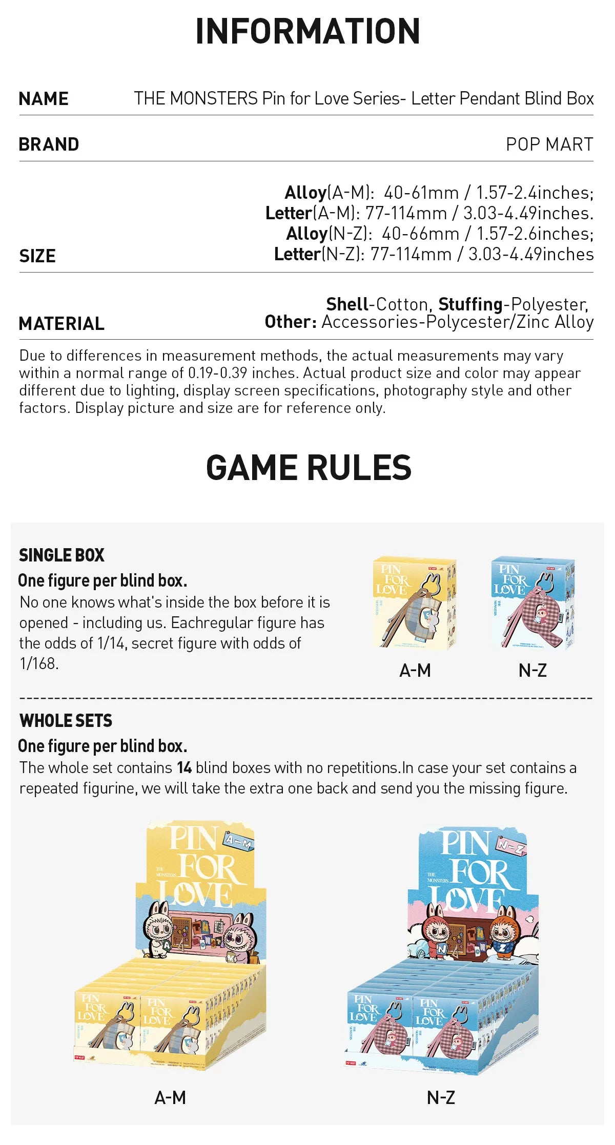 THE MONSTERS - Labubu Pin For Love Letter Pendant Series